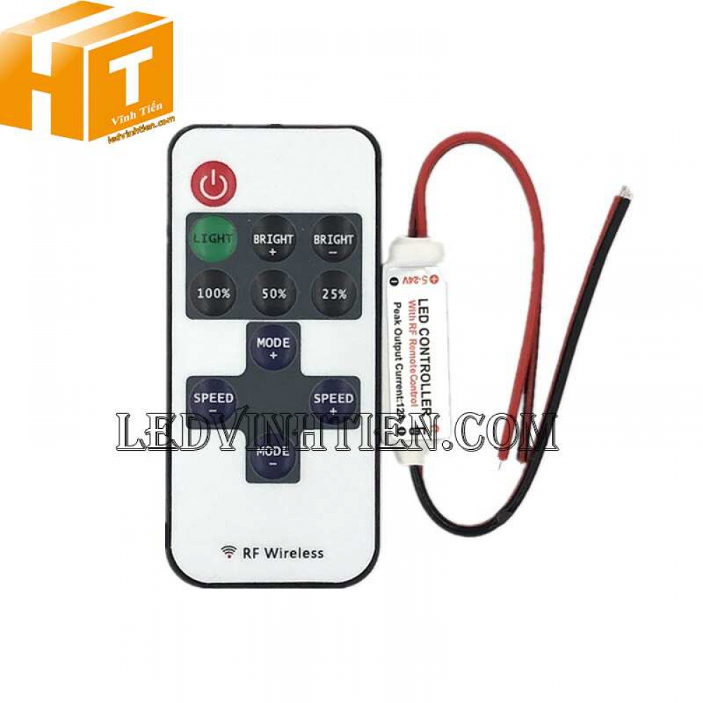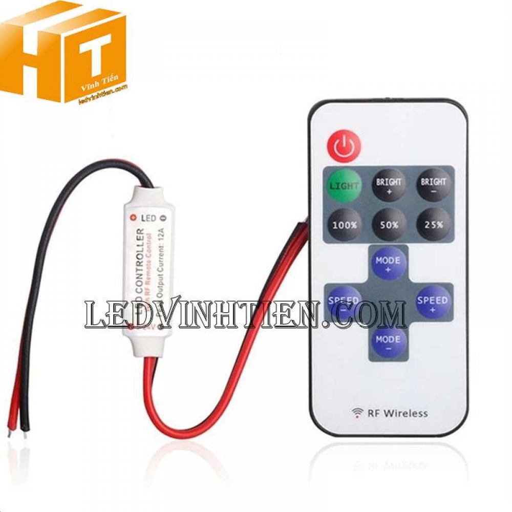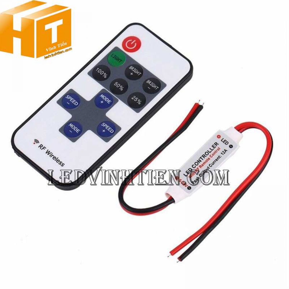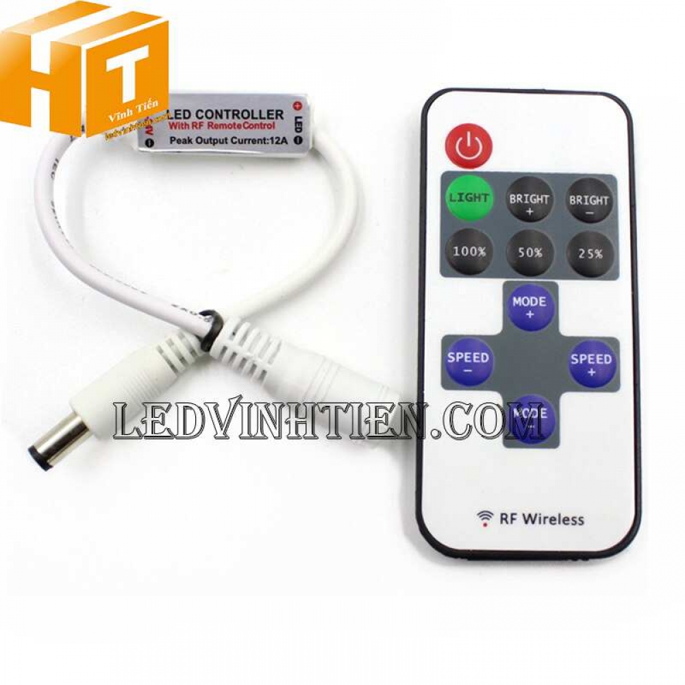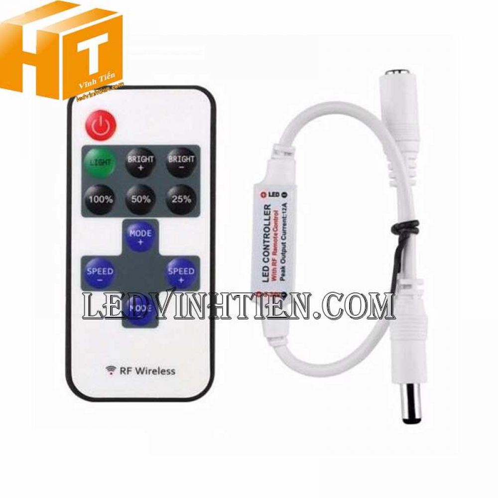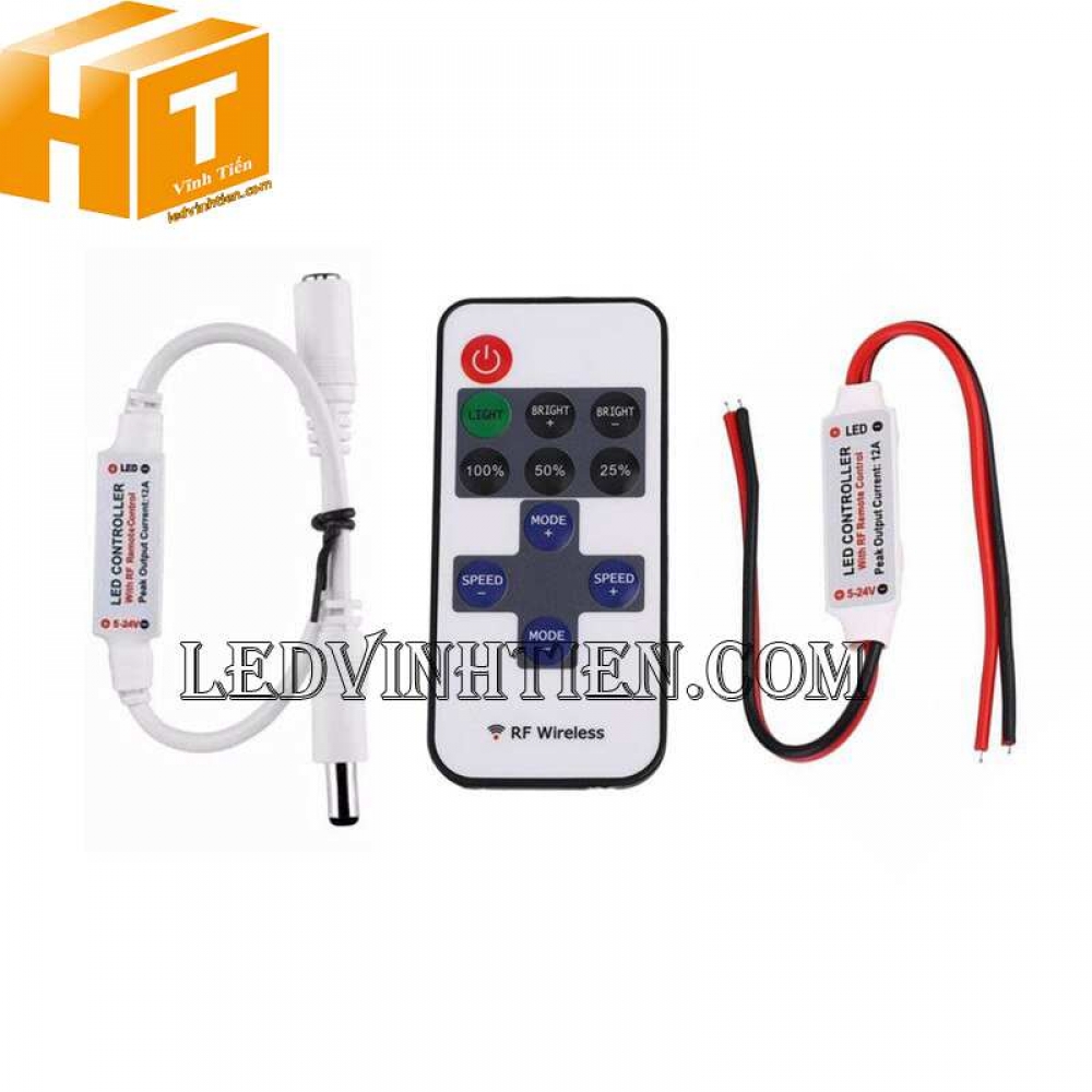 - Bộ điều khiển Mini DC 5V 12V 24V RF không dây 12A cho nhiều loại led dây dán, led thanh nhôm, led đúc với các chips led như 3528, 5050, 5630, 3014, 2835, 5054, 4014, 4040 và các dải led module khác,...