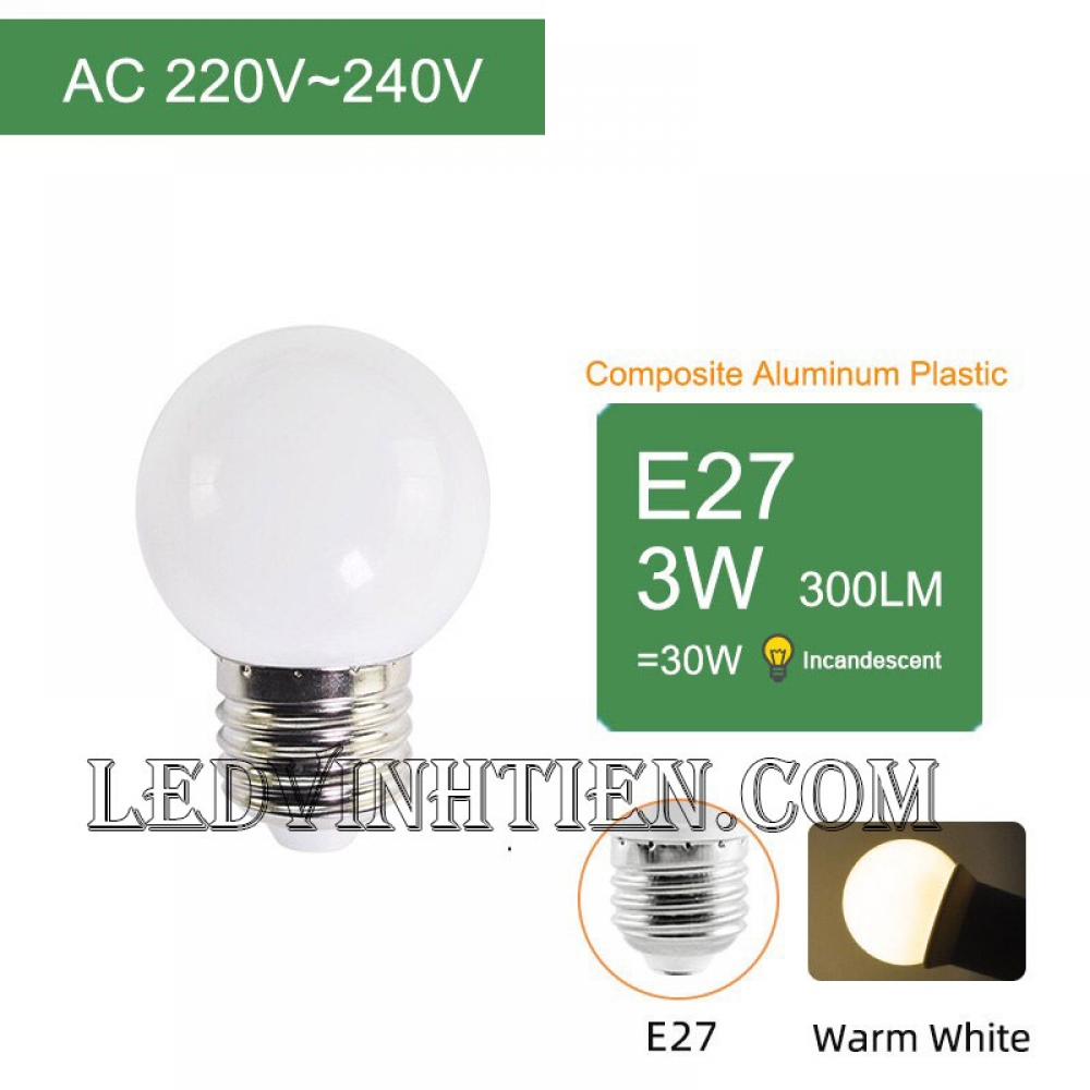 Thông số kỹ thuật Bóng đèn led trái chanh 3W warm white loại tốt, giá rẻ, chiếu sáng ngoài trời