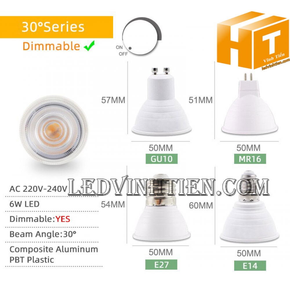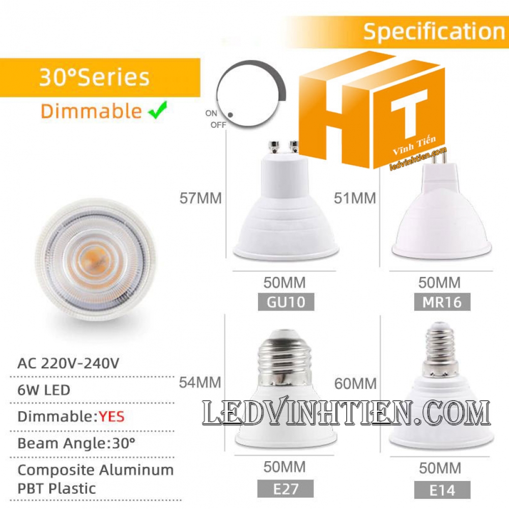 Bóng chén 5W đui MR16, GU10, GU5.3, E14, E27 loại tốt, giá rẻ, ánh sáng đẹp, chất lượng, chính hãng ledvinhtien.com