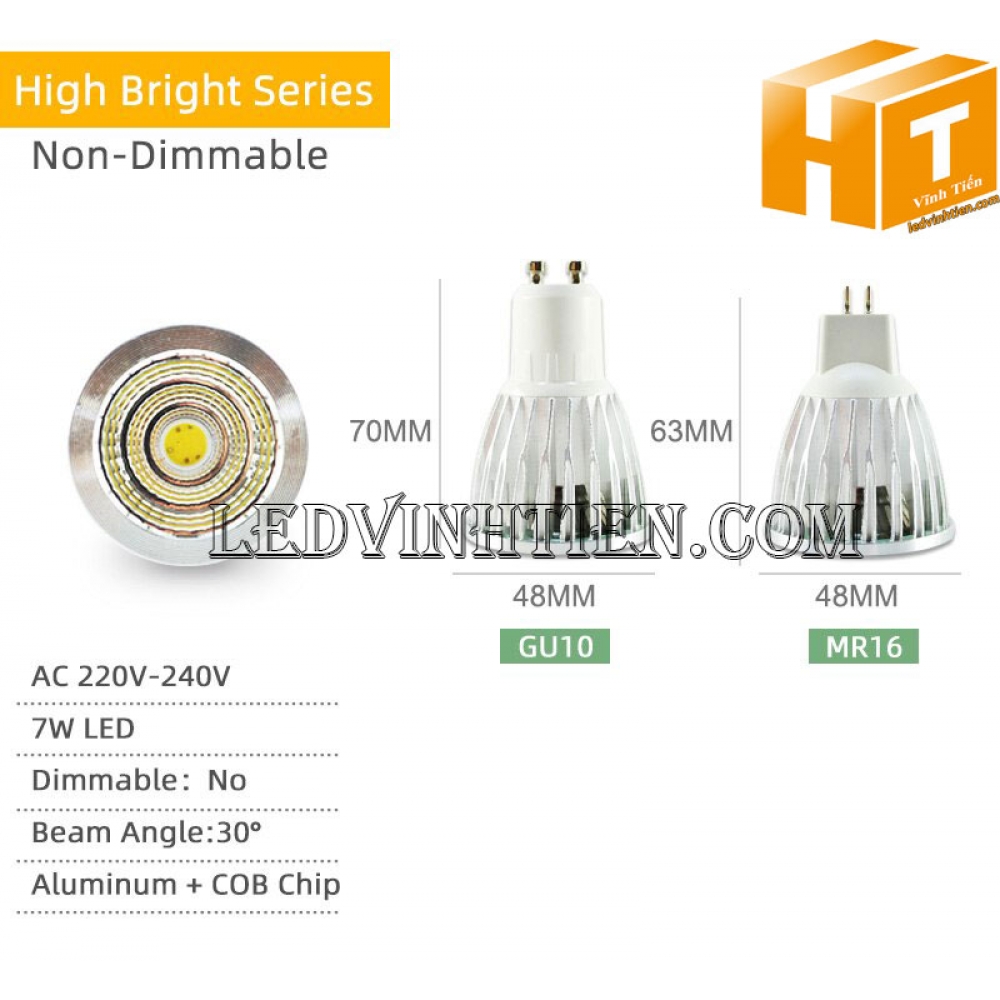 Thông số kỹ thuật bóng chén 7W đui vặn MR16 loại tốt, giá rẻ, chất lượng, siêu sáng