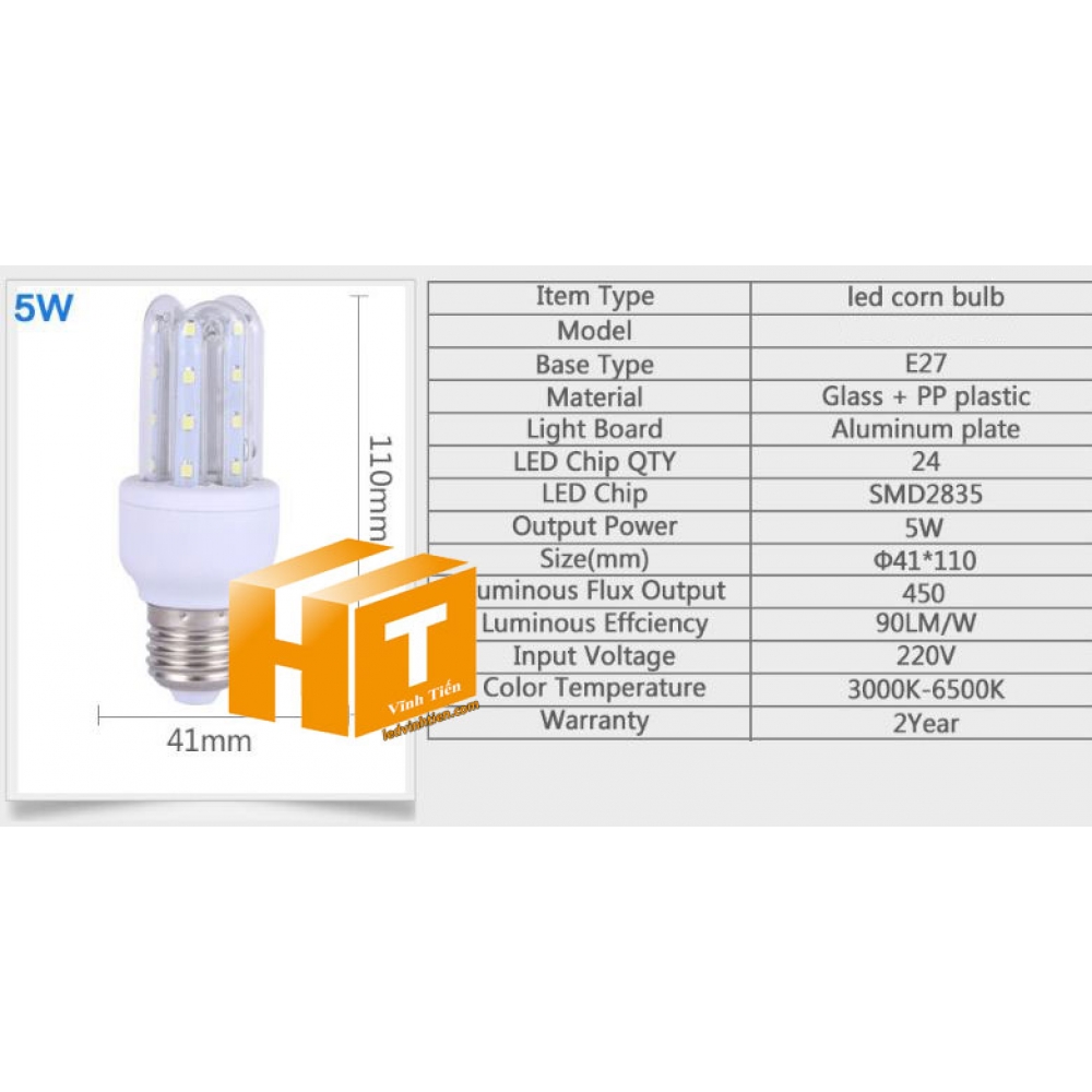 Thông số kỹ thuật Bóng đèn U led 5W loại tốt, giá rẻ, chất lượng, siêu sáng