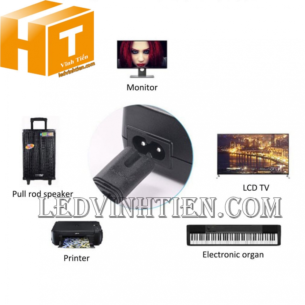 • Dây điện ba chấu dùng cho nguồn máy tính, pin sạc laptop, máy in, MÀN HÌNH LCD, TFT, màn hình CRT, thiết bị âm thanh.
