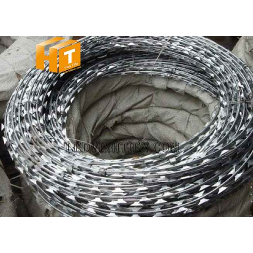 • Dây kẽm gai hình dao: Đường kính cuộn 35cm (5-7m/ cuộn), 45cm (3-5m/ cuộn), 60cm (6-8m/ cuộn), 80cm (6-8m/ cuộn)