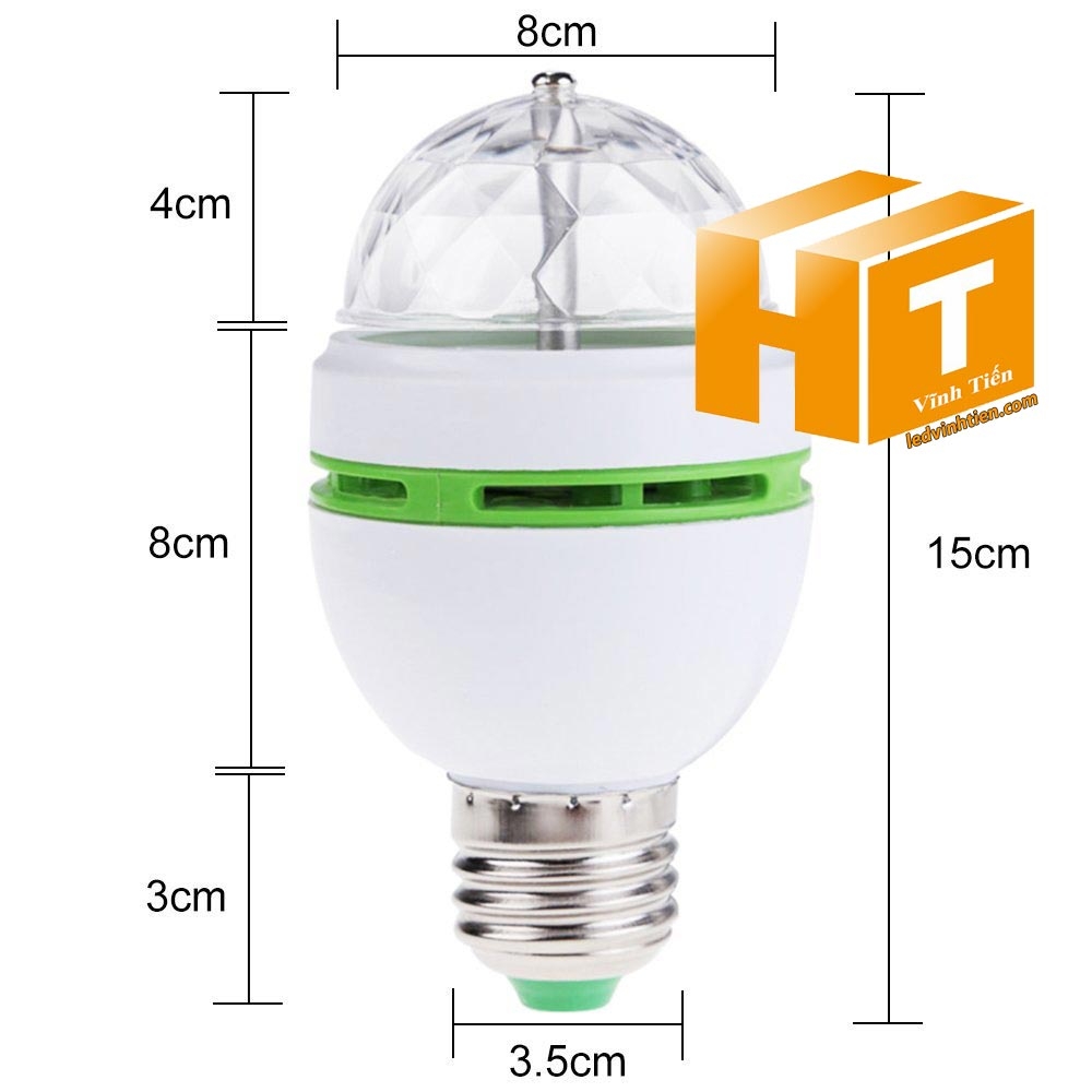 Thông số kỹ thuật Đèn cầu xoay 6W đuôi vặn loại tốt, giá rẻ, nháy theo nhạc