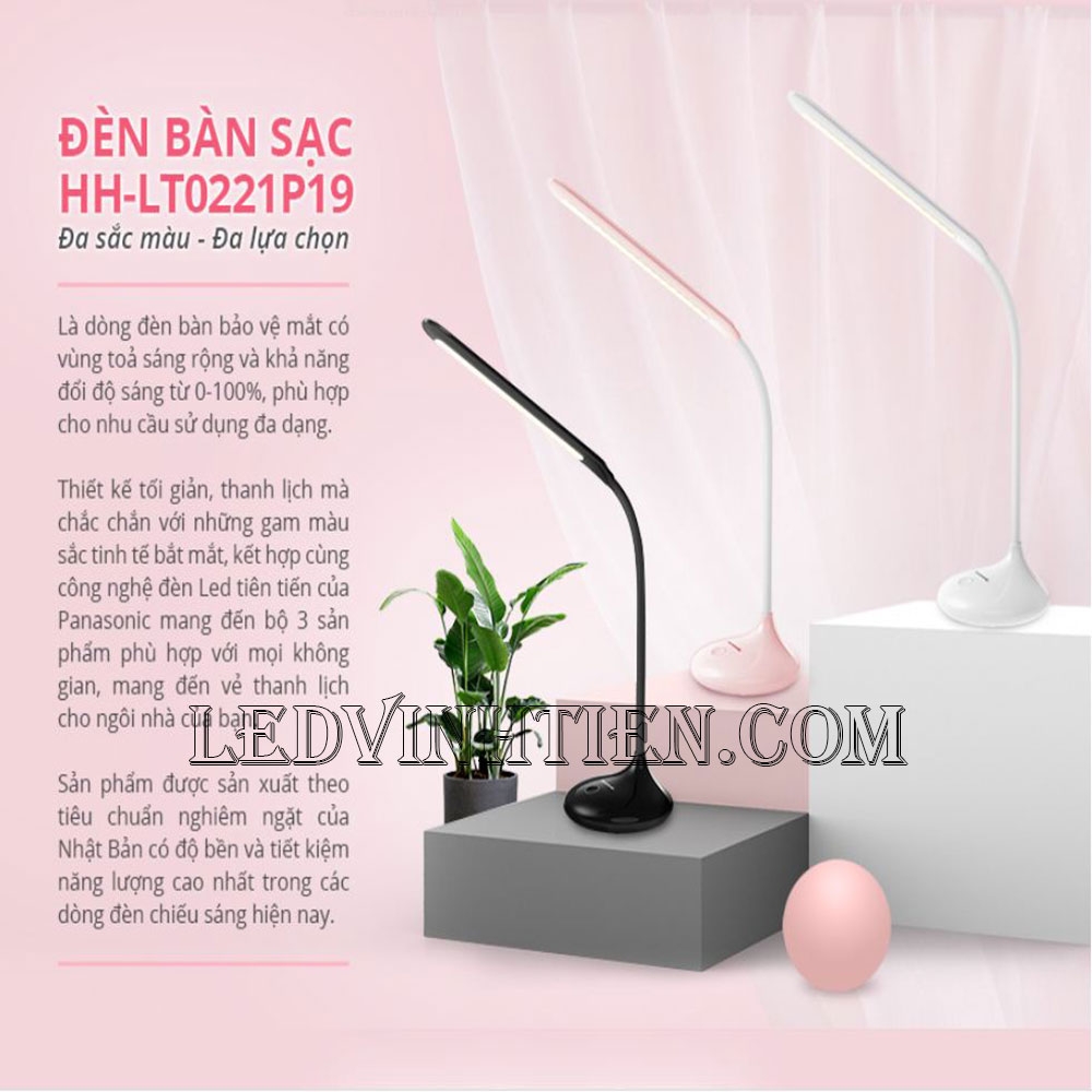 Đèn sạc để bàn LED Panasonic HH-LT0220P19 (Trắng)/ HH-LT0222P19 (Hồng)/ HH-LT0221P19 (Đen) có thể xoay đèn nhiều vị trí khác nhau, góc phát sáng rộng, thích hợp làm đèn học cho trẻ em, cho sinh viên, dùng để đọc sách, làm việc buổi tối của giới văn phòng.