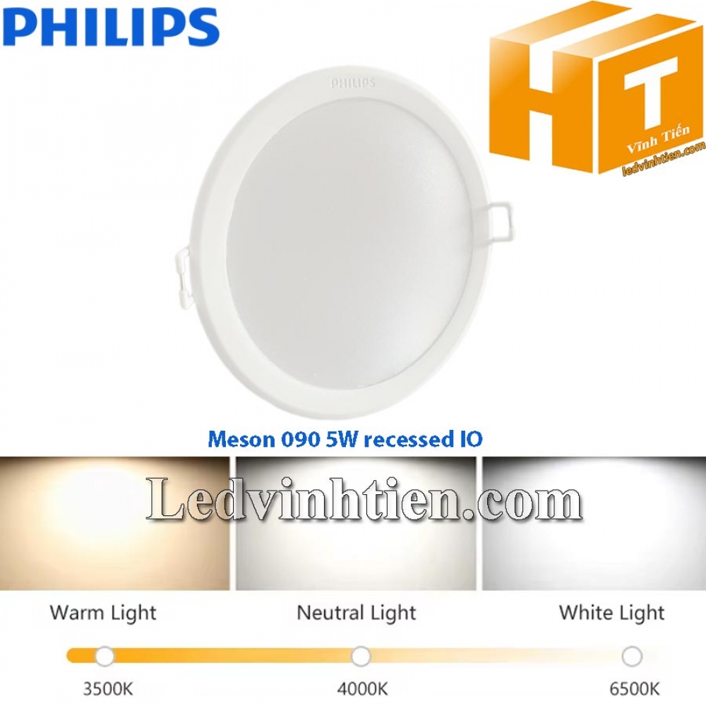 • Tên sản phẩm: Đèn led downlight âm trần tròn 5W Meson 090 recessed IO Philips