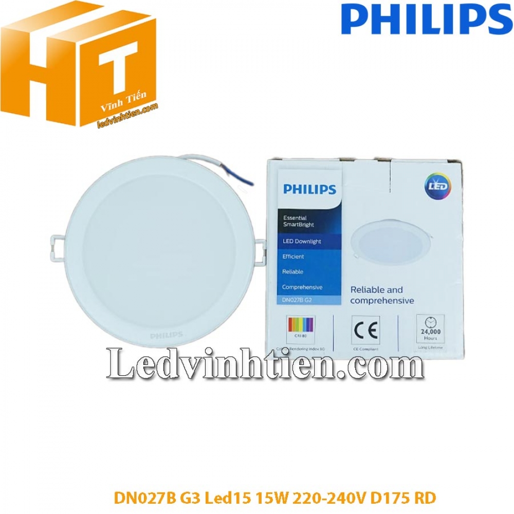 - Tên sản phẩm: Đèn led âm trần tròn 15w DN027B G3 Led15 220-240V D175 RD Philips