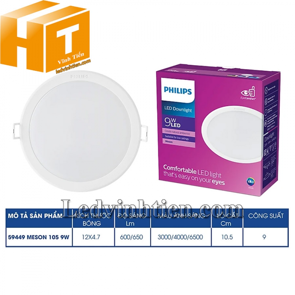 • Tên sản phẩm: Đèn led âm trần tròn 9W 59449 Meson 105 Philips