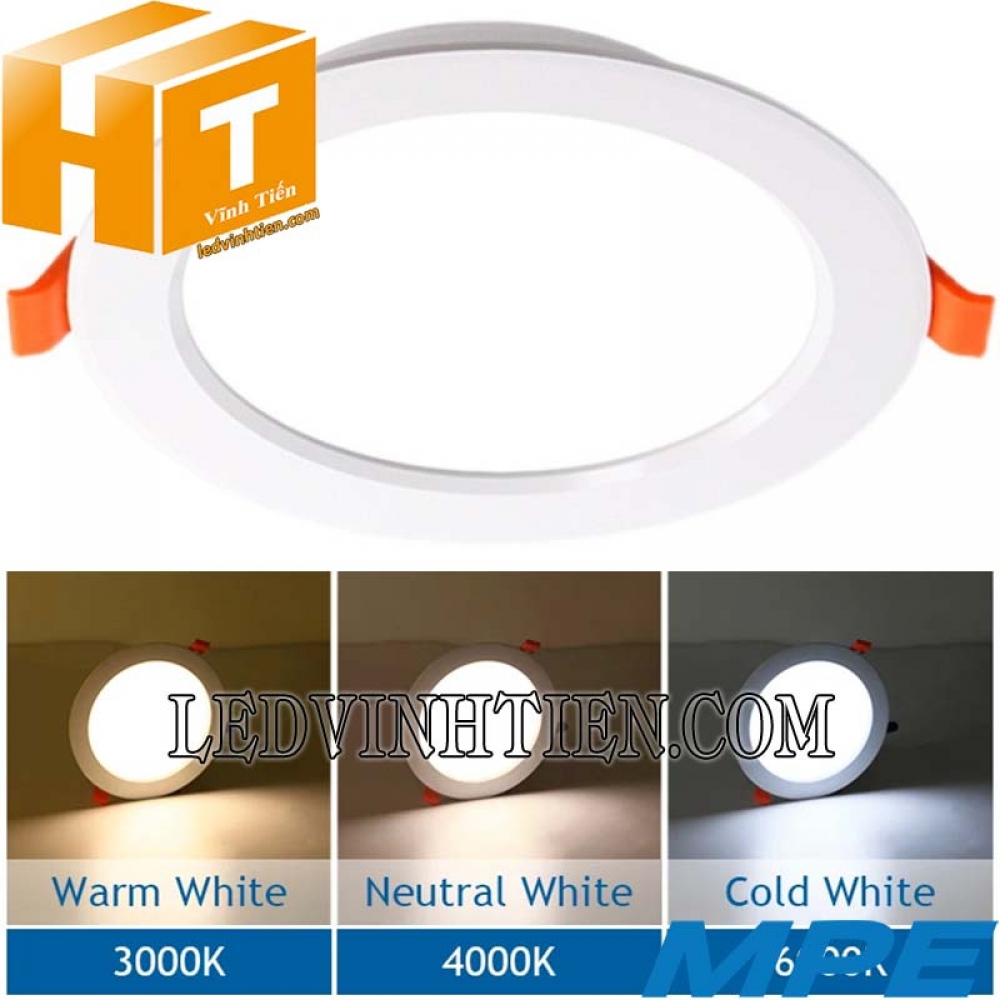 Hình ảnh đèn led downlight âm trần 3 màu 9W MPE Ø105 viền trắng