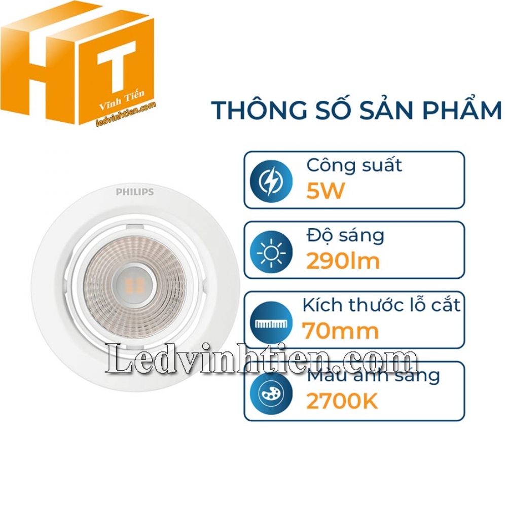 • Tên sản phẩm: Đèn led downlight chiếu điểm Pomeron 5W đổi góc linh hoạt 2 trục Philips