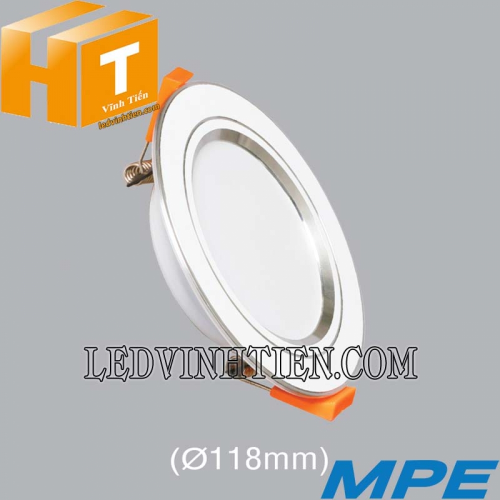 - Đèn led downlight MPE 9W Ø118 mm có 3 loại ánh sáng trắng, vàng, trung tính tương ứng các mã DLB-9T, DLB-9V, DLB-9N.