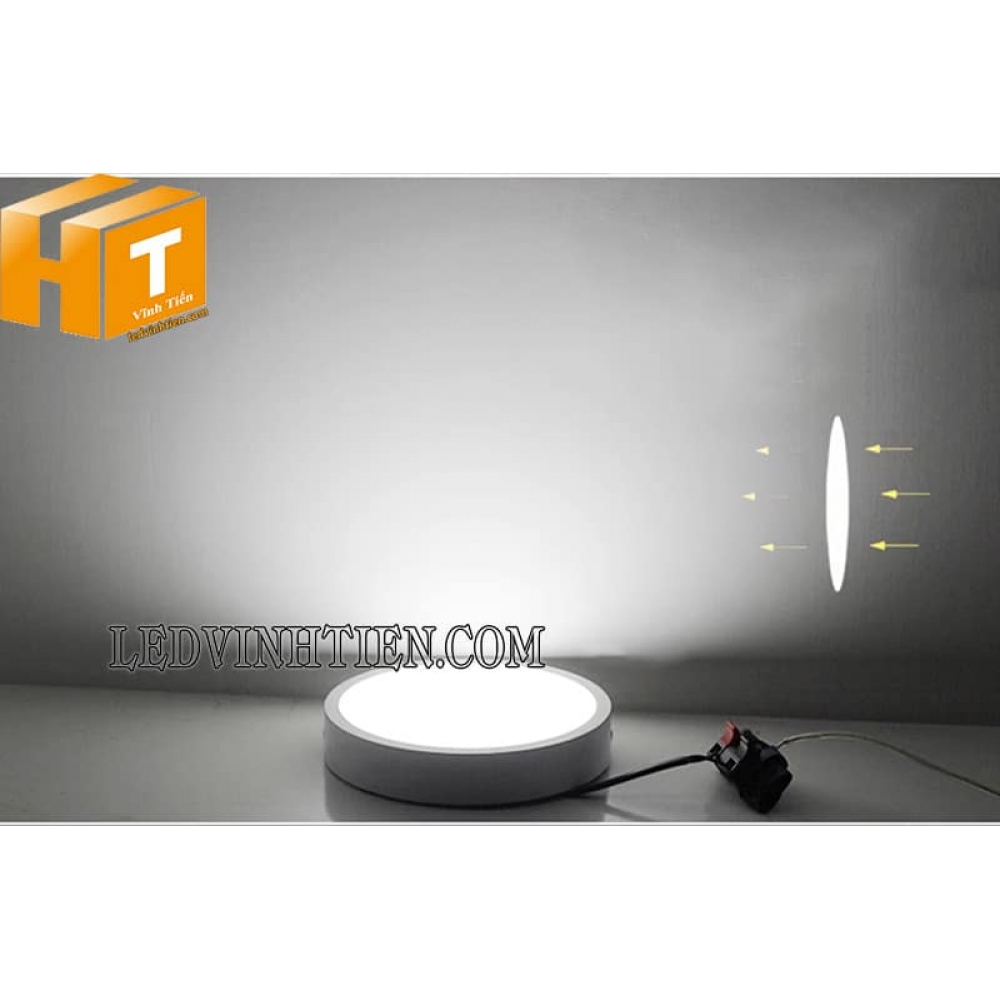 Đèn led ốp trần nổi hay còn gọi là đèn led ốp nổi, đèn led ốp trần. Ánh sáng chiếu trực tiếp từ trên xuống cung cấp ánh sáng cho không gian nhưng không làm chói mắt, tăng tính thẩm mỹ và giảm khả năng cận thị, có hiệu suất chiếu sáng cao, ánh sáng đều, chống nhiễu tốt, giảm nhiệt độ cho driver, tăng tuổi thọ đèn. Đèn được thiết kế nhỏ gọn giúp tản nhiệt nhanh. Điều đặc biệt tích hợp cảm biến thông minh nên loại đèn này được sử dụng rộng rãi trong việc trang trí nội thất gia đình, khách sạn, nhà hàng phục vụ cho việc chiếu sáng tại các phòng như phòng ngủ, phòng bếp, phòng khách… Mẫu mã sang trọng, đa dạng màu sắc ánh sáng thích hợp cho việc trang trí và chiếu sáng cho những nơi như siêu thị, bệnh viện, khách sạn, trung tâm thương mại, trường học...