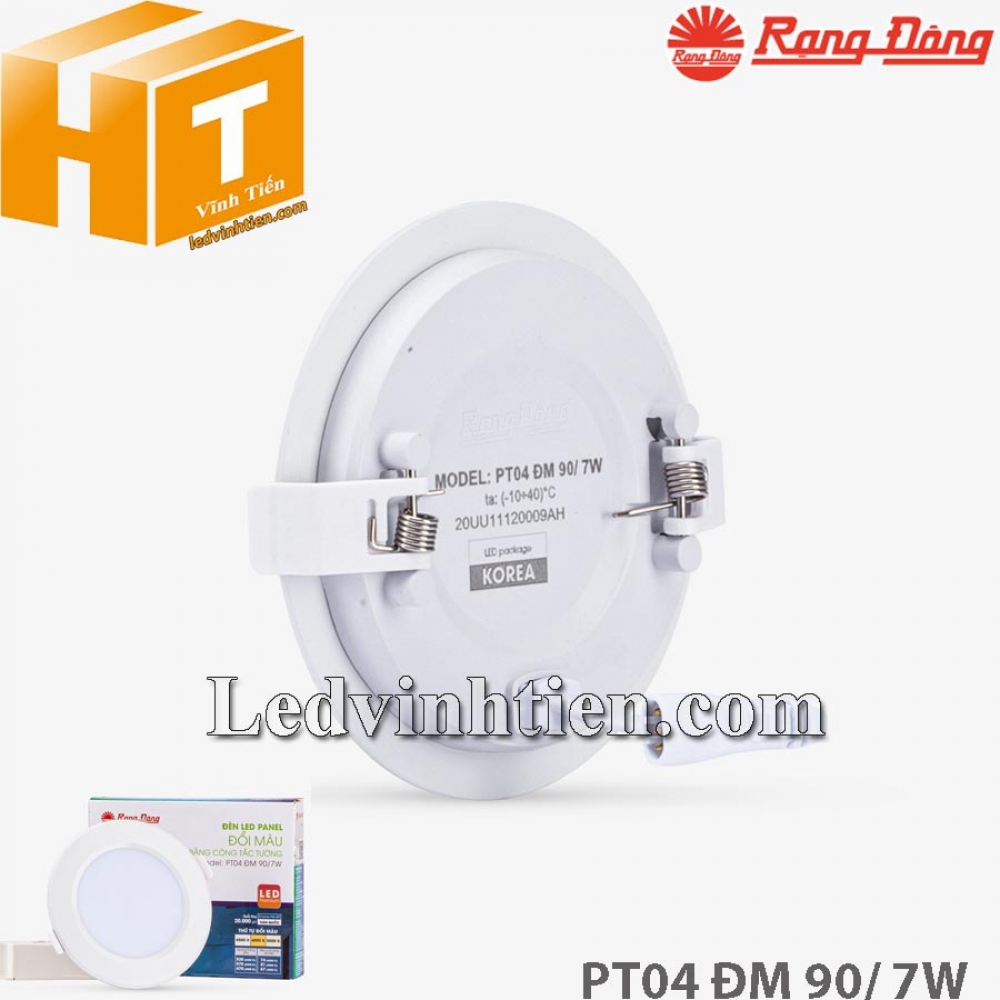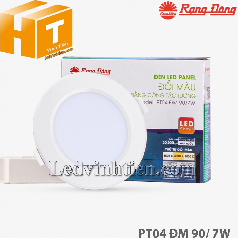 Thông số kỹ thuật của đèn led panel tròn đổi màu 90/7W PT04. ĐM chính hãng Rạng Đông