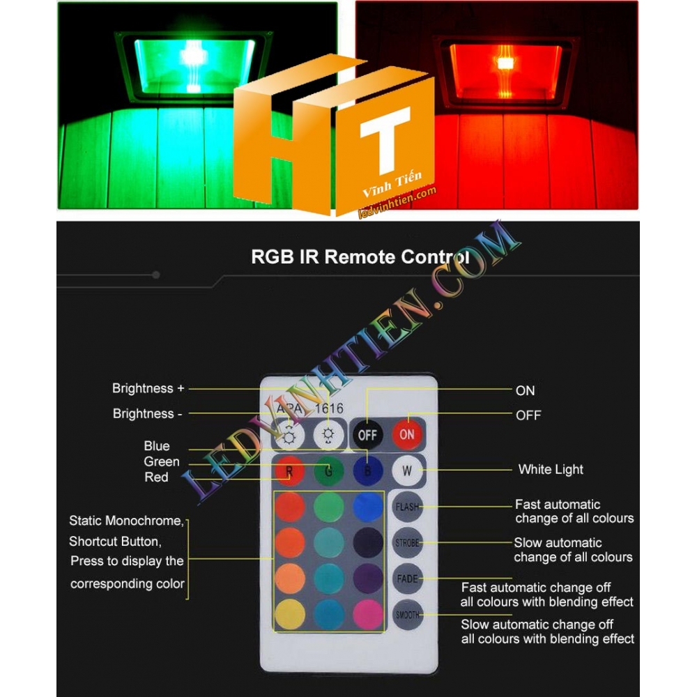 - Mã sản phẩm: Đèn pha led 100w RGB có remote điều khiển từ xa
