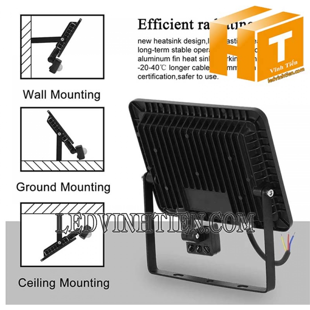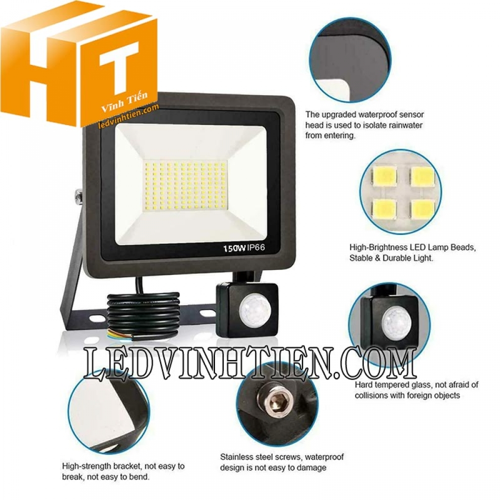 Hình ảnh chi tiết của đèn pha led cảm biến hồng ngoại PIR 150w, loại tốt đang được bán tại Công Ty Vĩnh Tiến