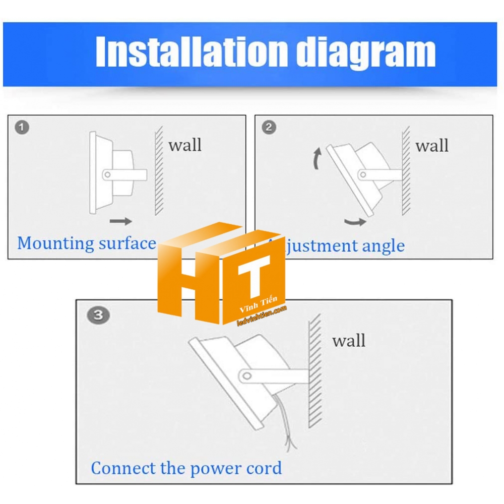 - Cài đặt dễ dàng và thuận tiện, Đèn pha ly LED của công ty đèn led Vĩnh Tiến ngoài trời của chúng tôi có thể được cài đặt rất đơn giản. Bạn chỉ cần cài đặt giá đỡ trên các lỗ lắp đã chuẩn bị, sau đó kết nối các ốc vít để cố định thiết bị.