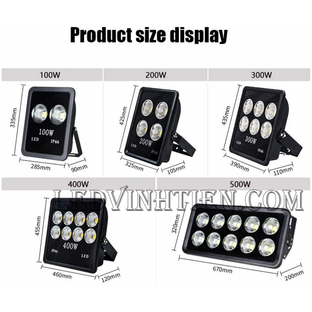 Kích thước của một số quy cách đèn pha led 400W chiếu điểm, loại tốt, giá rẻ, chất lượng, ledvinhtien.com