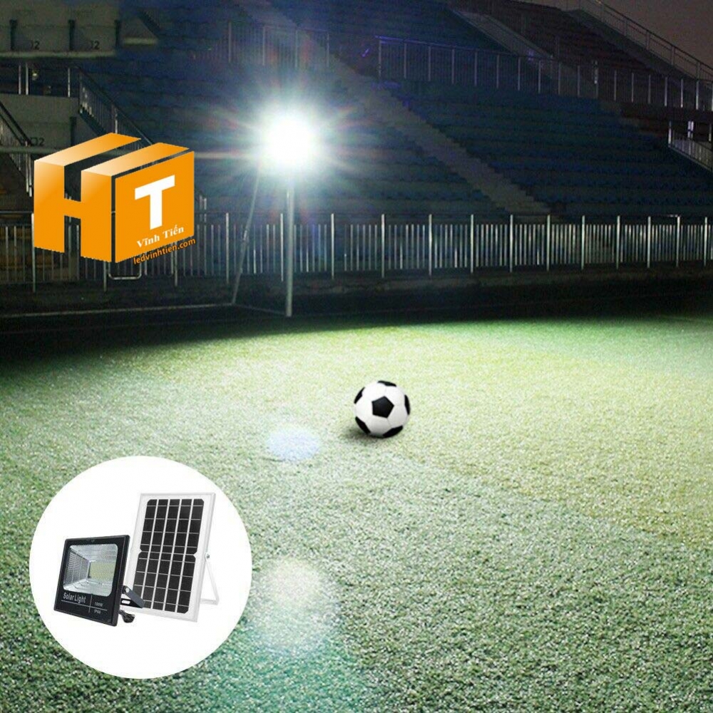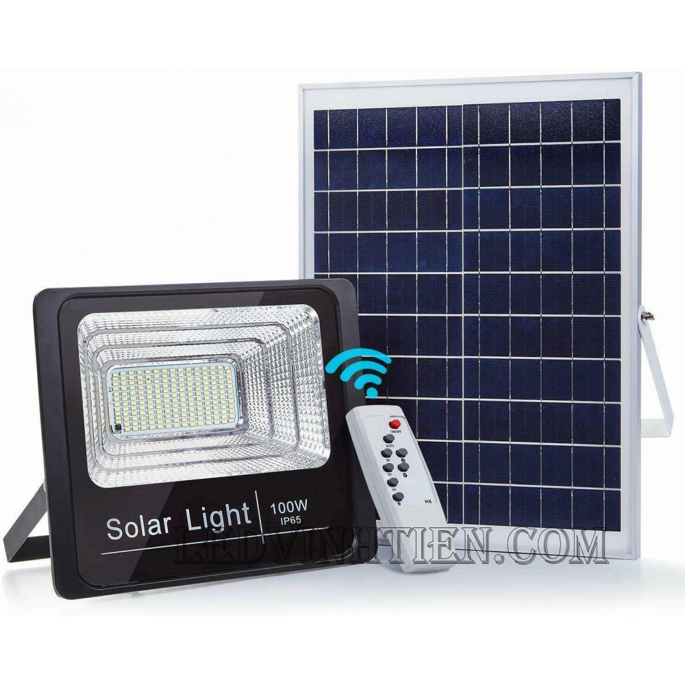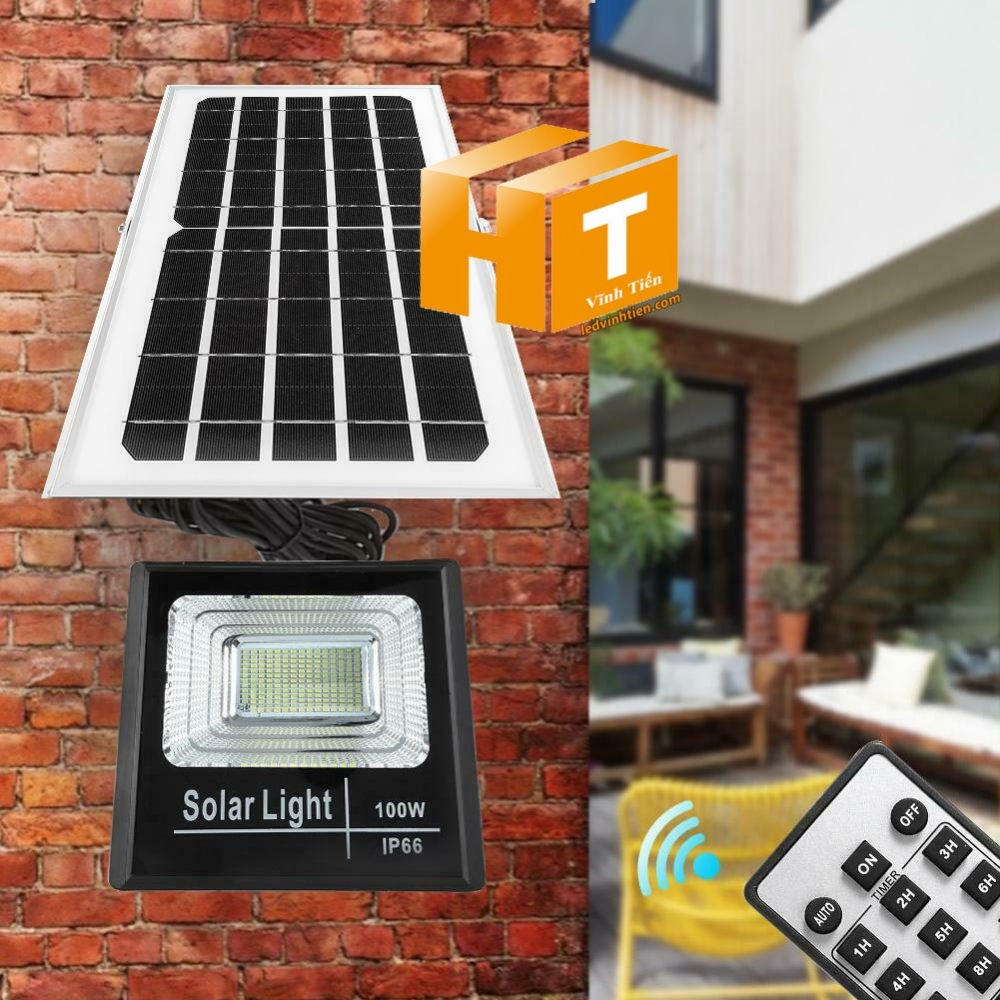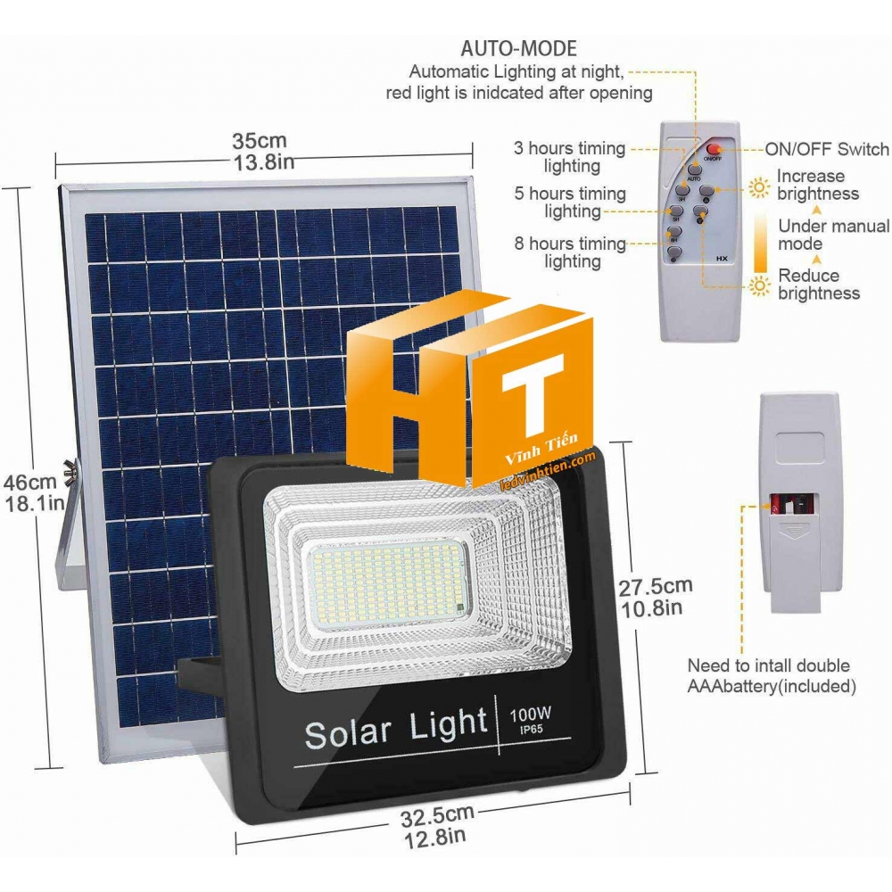 Đèn pha năng lượng mặt trời 100W (Đèn pha led năng lượng mặt trời 100W VTHT-NLMT006). sử dụng năng lượng mặt trời chiếu sáng từ 3-5 năm không lo tốn tiền điện,  hiêu JINDIAN, Thời gian chiếu sáng đến 10-12 giờ liên tục,  Đèn có tính năng tự động bật khi trời tối và tắt khi trời sáng.  Lắp đặt dễ dàng, phù hợp mọi địa hình,  Thắp sáng suốt đêm, tránh xa sự dòm ngó của trộm cắp  Kèm theo điều khiển bật/tắt từ xa và chế độ hằng giờ hiện đại giúp cuộc sống của bạn dễ dàng và tiện lợi hơn bao giờ hết.  Tấm pin công nghệ Poly, tuổi thọ lên đến 10-12 năm. Thích hợp lắp đặt trong nhà, các ki ốt, nhà hàng, trên tàu thuyền. sản phẩm đèn năng lượng dùng ngoài trời, loại tốt, giá rẻ, chất lượng, siêu sáng, cảm úng chuyển động, chính hãng ledvinhtien.com