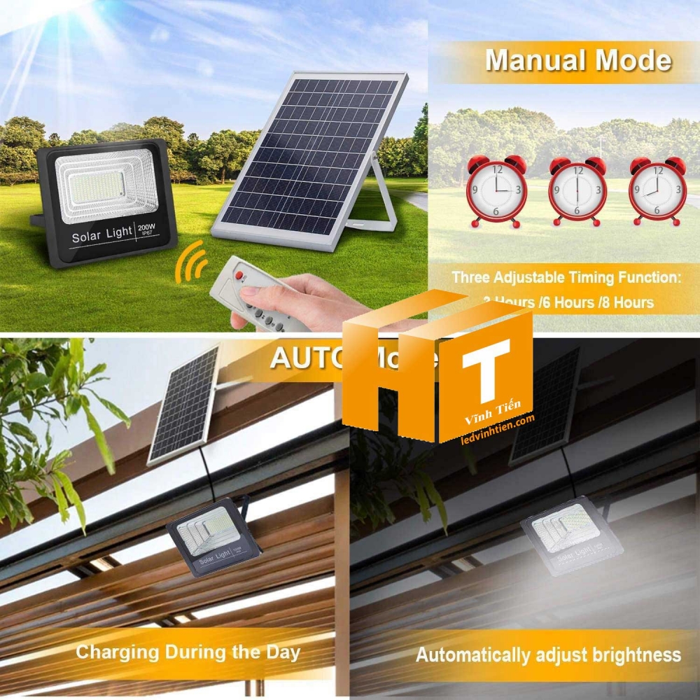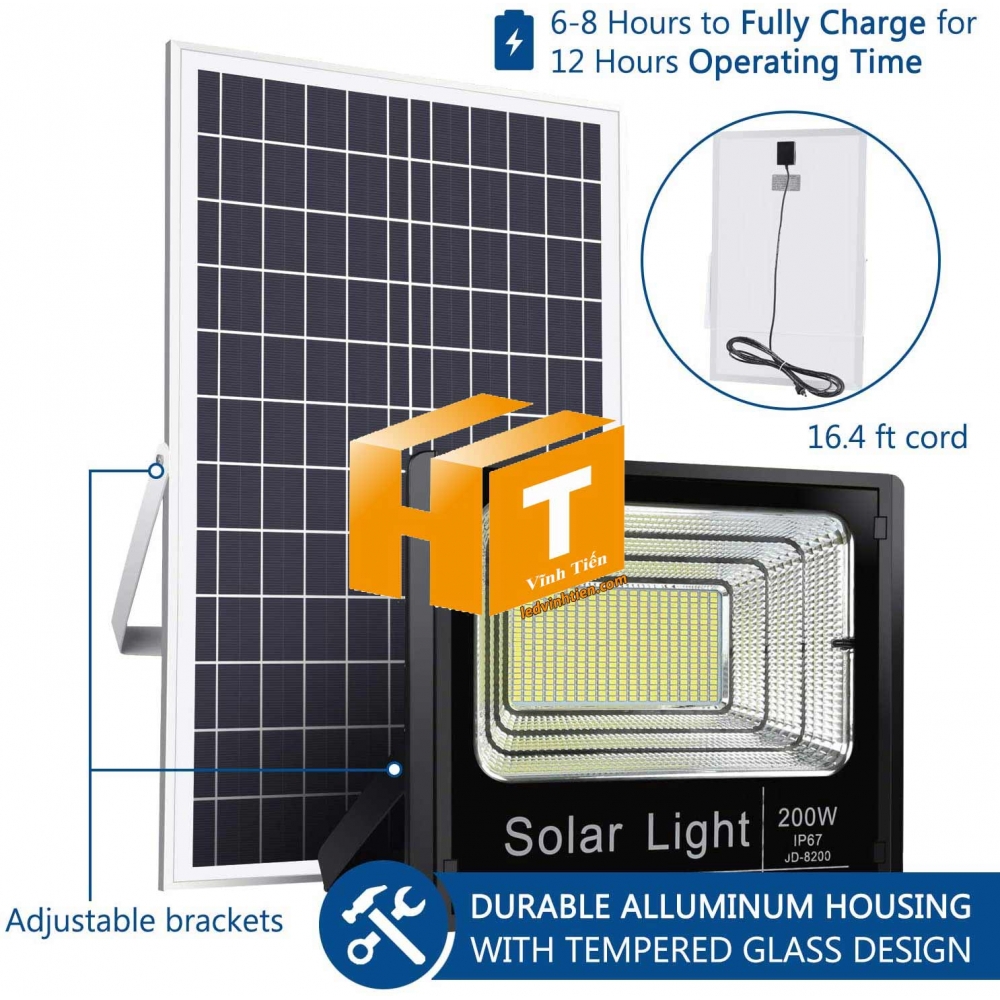• Thời gian làm việc của Solar Light 200W: Hơn 20 giờ sau khi được sạc đầy (Chế độ một nửa ánh sáng)