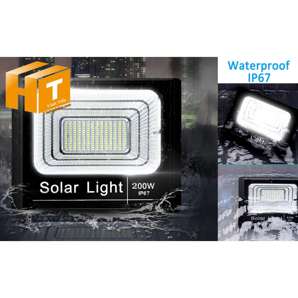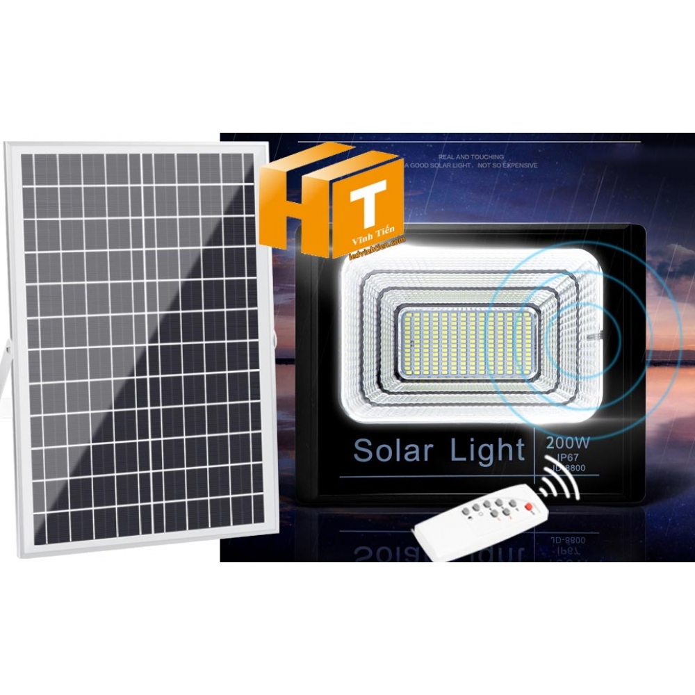 Đèn pha năng lượng mặt trời 200W (Đèn pha led năng lượng mặt trời 200W VTHT-NLMT007). sử dụng năng lượng mặt trời chiếu sáng từ 3-5 năm không lo tốn tiền điện,  hiêu JINDIAN, Thời gian chiếu sáng đến 10-12 giờ liên tục,  Đèn có tính năng tự động bật khi trời tối và tắt khi trời sáng.  Lắp đặt dễ dàng, phù hợp mọi địa hình,  Thắp sáng suốt đêm, tránh xa sự dòm ngó của trộm cắp  Kèm theo điều khiển bật/tắt từ xa và chế độ hằng giờ hiện đại giúp cuộc sống của bạn dễ dàng và tiện lợi hơn bao giờ hết.  Tấm pin công nghệ Poly, tuổi thọ lên đến 10-12 năm. Thích hợp lắp đặt trong nhà, các ki ốt, nhà hàng, trên tàu thuyền. sản phẩm đèn năng lượng dùng ngoài trời, loại tốt, giá rẻ, chất lượng, siêu sáng, cảm úng chuyển động, chính hãng ledvinhtien.com