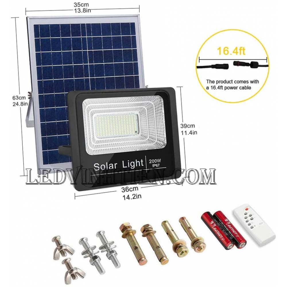 Thông số kỹ thuật đèn pha led năng lượng mặt trời 200w vỏ đen, loại tốt, giá rẻ, chất lượng, giá rẻ, dùng ngoài trời, ledvinhtien.com
