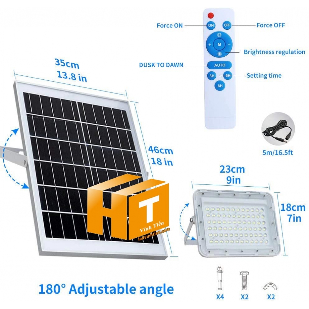 • Điều khiển từ xa (Chế độ 1: tự động bật sáng, bật sáng lúc hoàng hôn và tắt khi bình minh; Chế độ 2: Đèn báo thời gian trong 3/5/8 giờ hoặc bật / tắt bất cứ lúc nào. Chế độ 3: Nửa sáng trên cơ sở chế độ 1 hoặc 2)