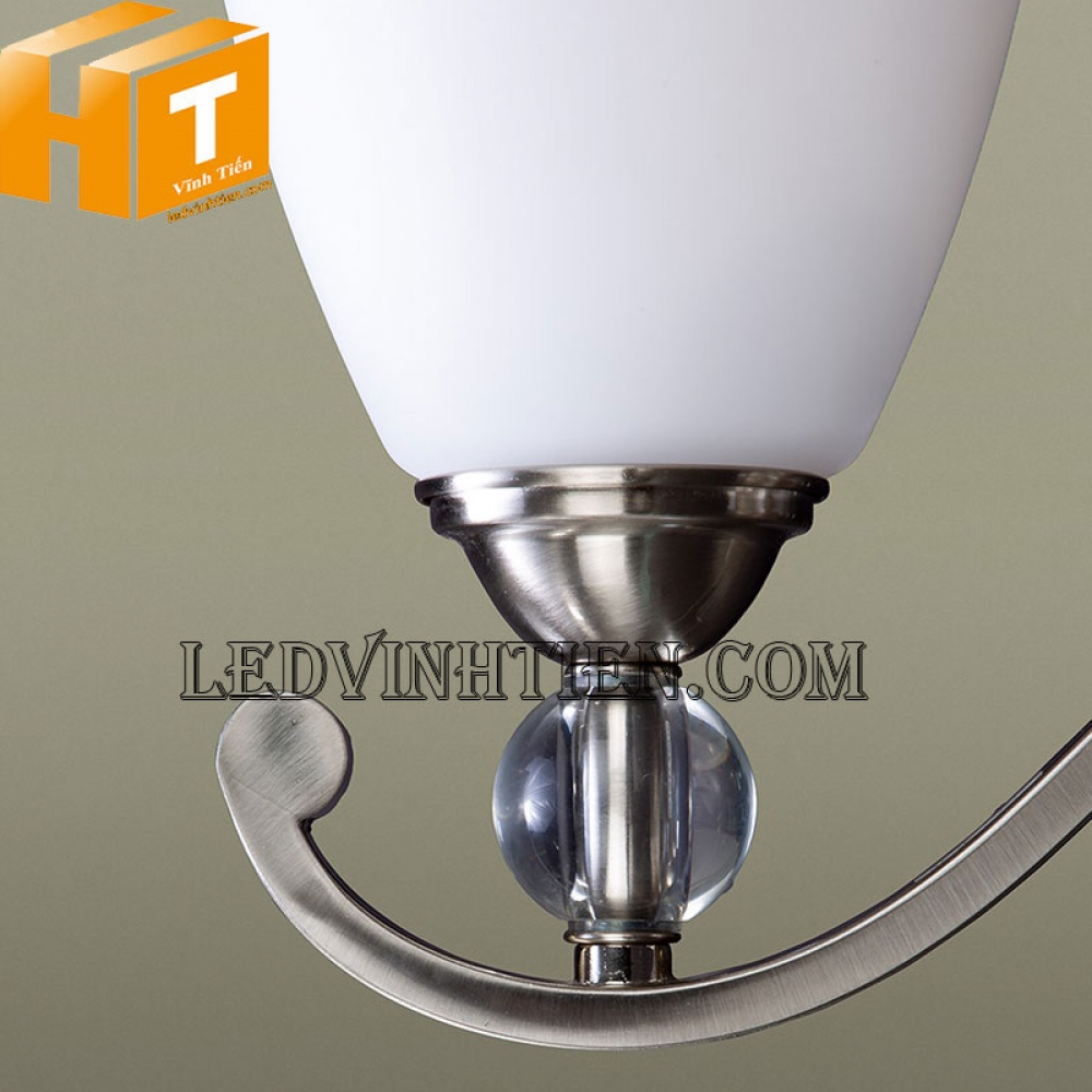 - Chất liệu: Khung sườn kim loại màu bạc, chóa đèn bằng sứ