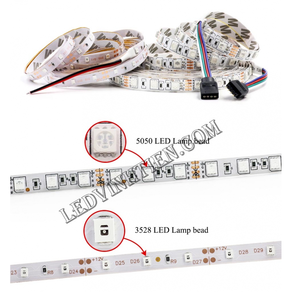 Thông số kỹ thuật đèn led dây 12V chíp led SMD 5050 có keo 2 lớp RGB, nhiều màu loại tốt, giá rẻ, chất lượng, siêu sáng, chính hãng ledvinhtien.com