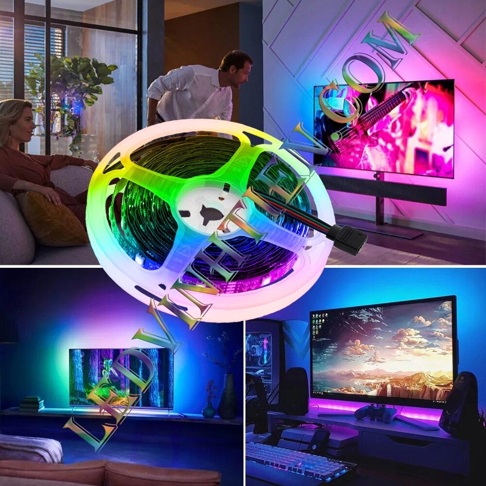 Led dây nhiều màu này rất lý tưởng cho việc trang trí không gian sống. Bạn có thể gắn chúng dưới tủ bếp, quanh gương, hoặc ở các khu vực như cầu thang. Việc thay đổi màu sắc giúp tạo ra không khí khác nhau cho từng không gian, từ ấm cúng cho phòng khách đến thư giãn cho phòng ngủ.