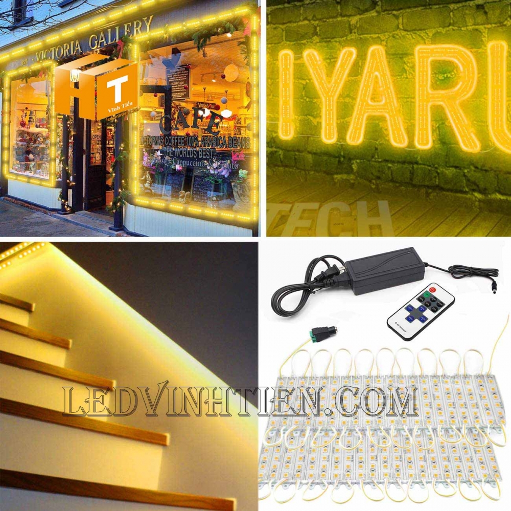 Hình ảnh chi tiết đèn led hắt 3 bóng warm white (led module 3 bóng), loại tốt, giá rẻ, siêu sáng dùng chiếu sáng ngoài trời, chính hãng ledvinhtien.com
