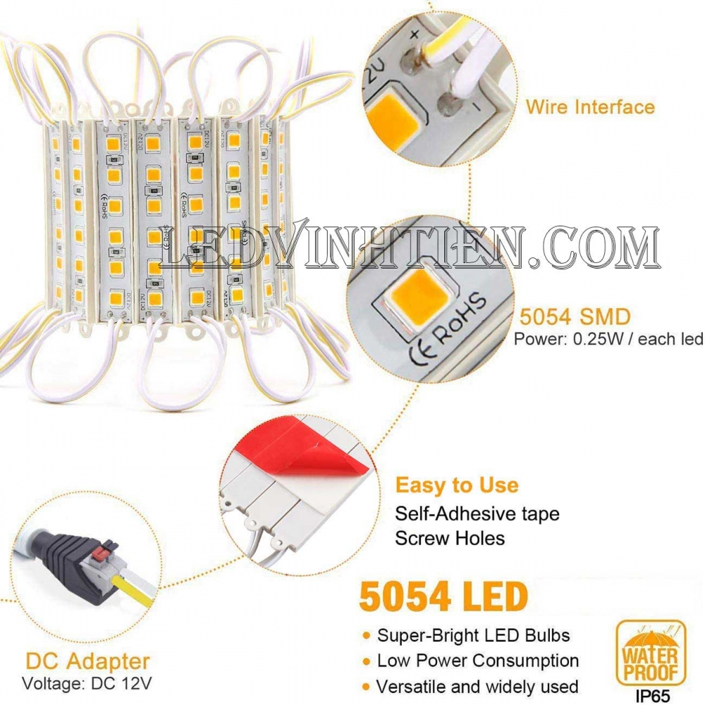- Tên sản phẩm: Led hắt 12V 5054 ánh sáng màu vàng nắng (led module 3 bóng 5054 warm white)