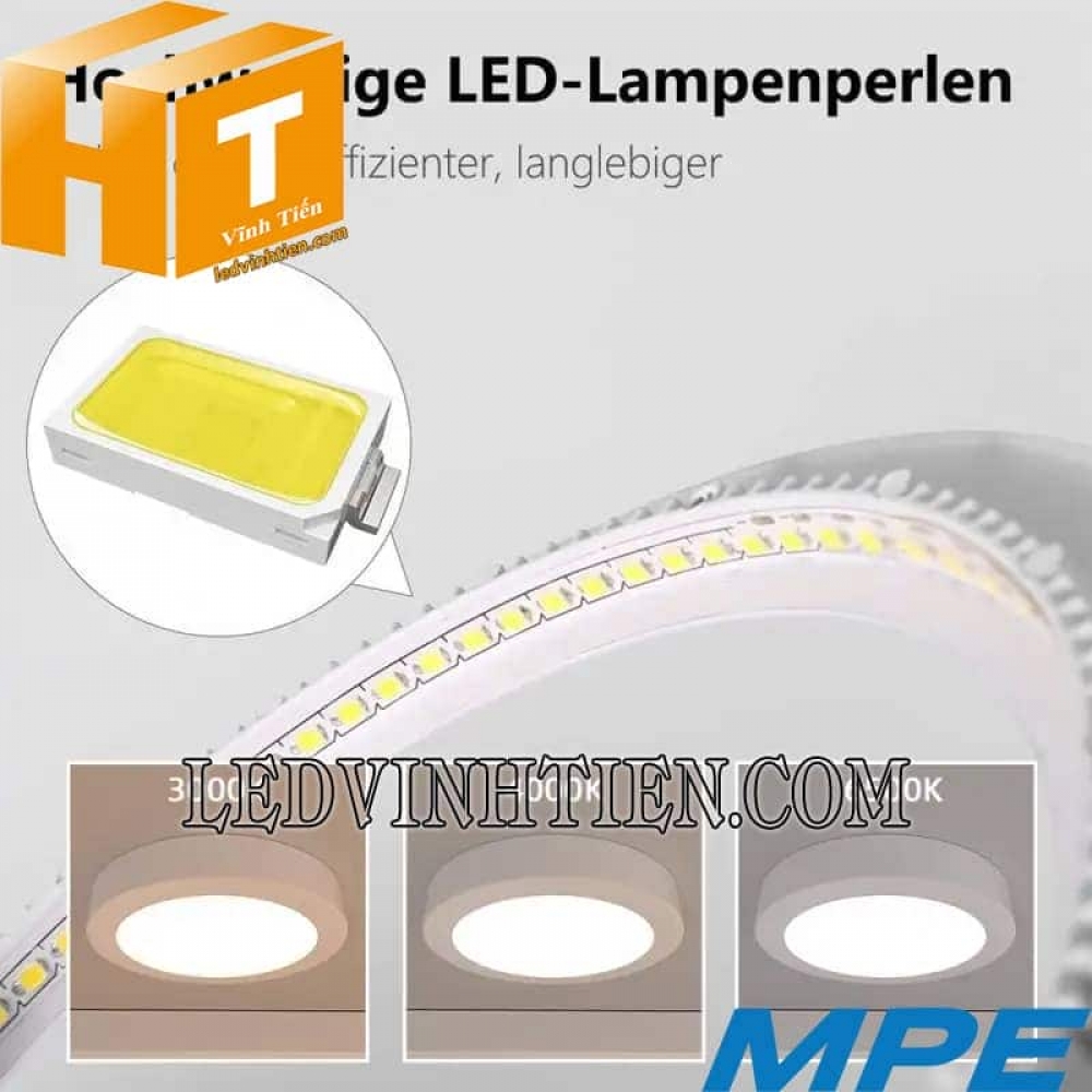 Mô tả led panel tròn nổi 3 màu 6w, 12w, 18w, 24w SRPL trắng, vàng, trung tính MPE.