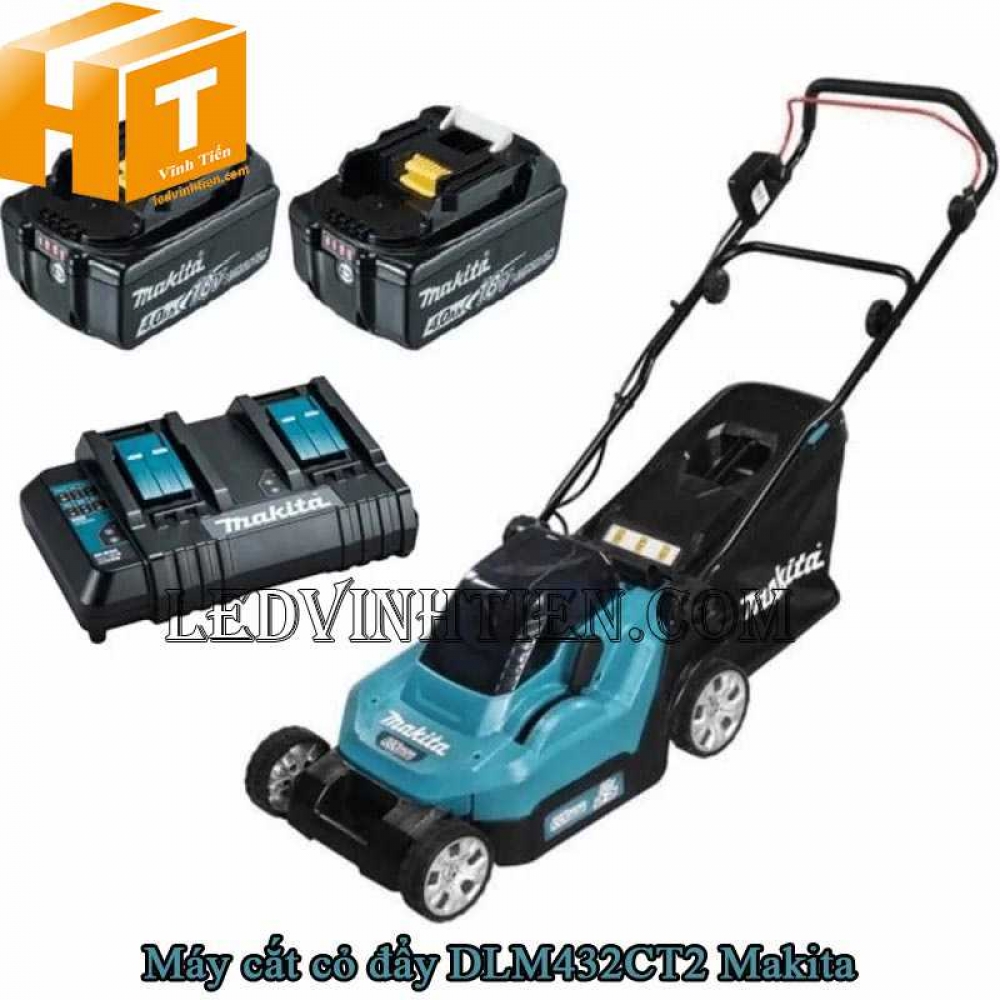 - Máy cắt cỏ đẩy dùng pin Makita DLM432CT2 có vẻ ngoài cứng cáp, tay cầm chắc chắn, cắt được đa dạng loại cỏ với công suất lên tới 950W và tốc độ cắt tối đa 3600 vòng / phút.