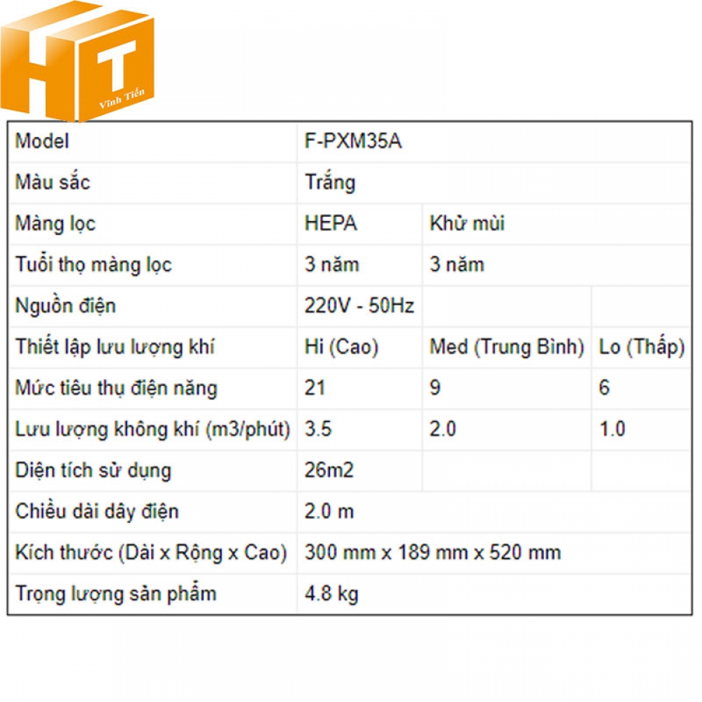 - Tên sản phẩm: Máy lọc không khí F-PXM35A Panasonic
