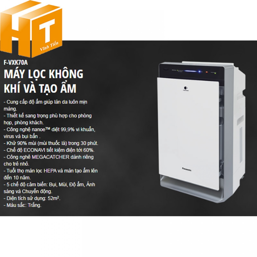 - Tên sản phẩm: Máy lọc không khí và tạo ẩm F-VXK70A Panasonic