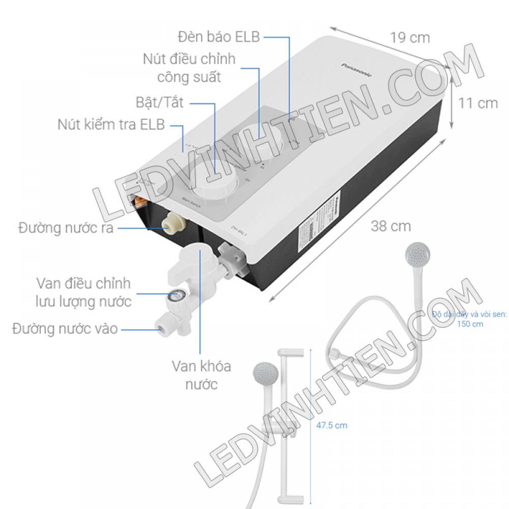 Thông số kỹ thuật của máy nước nóng trực tiếp DH-3RL2VH loại tốt, chính hãng Panasonic