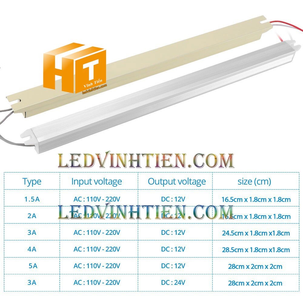 Một số quy cách, ampe, kích thước của các bộ nguồn đũa 12V và 24V loại tốt, giá rẻ, chính hãng Ledvinhtien.com