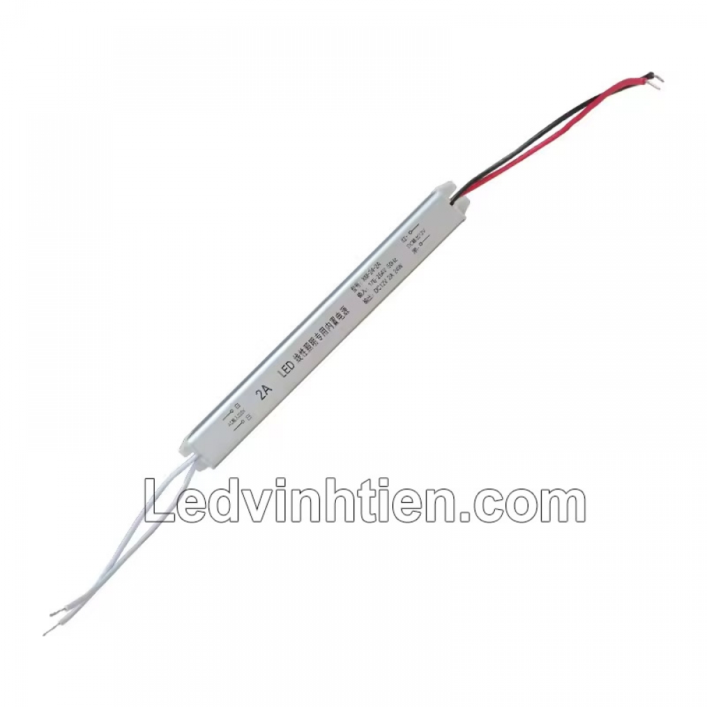 Hình ảnh chi tiết bộ nguồn đũa 12V 2A nhỏ gọn, dài, loại tốt giá rẻ, chất lượng dùng ngoài trời chính hãng ledvinhtien.com