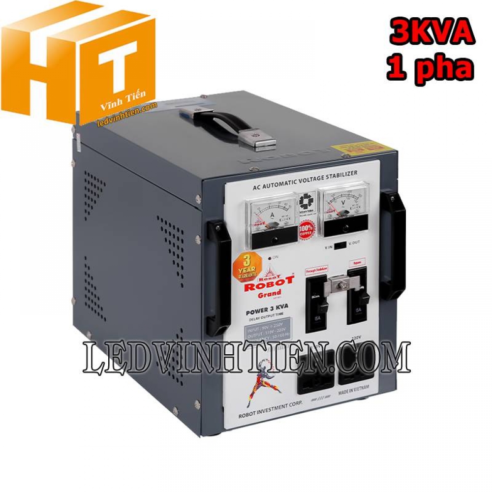 - Tên sản phẩm: Ổn áp 1 pha 3KVA 90-250V Robot Grand
