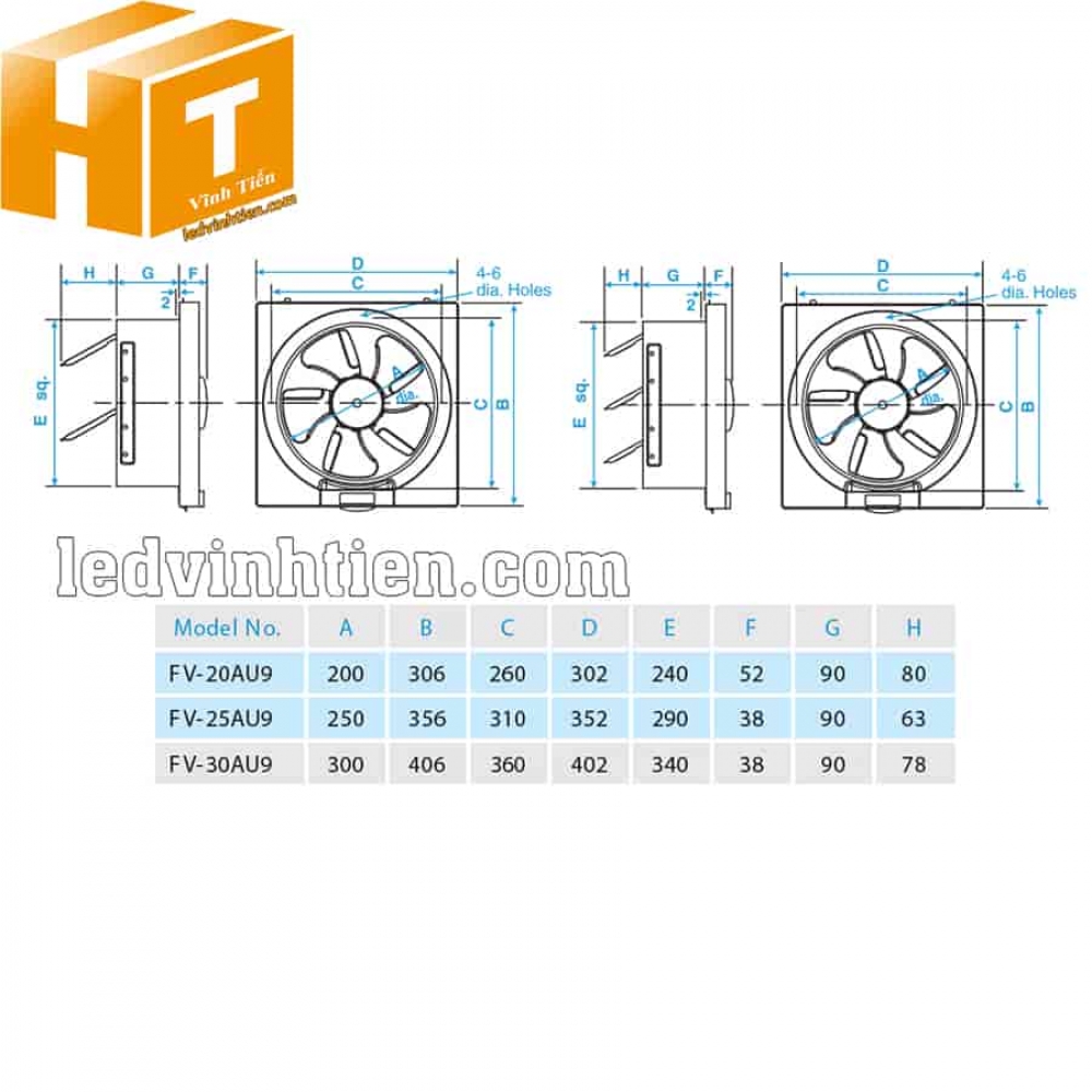 Đóng gói bao gồm: 1 x quạt hút âm tường FV-25AU9