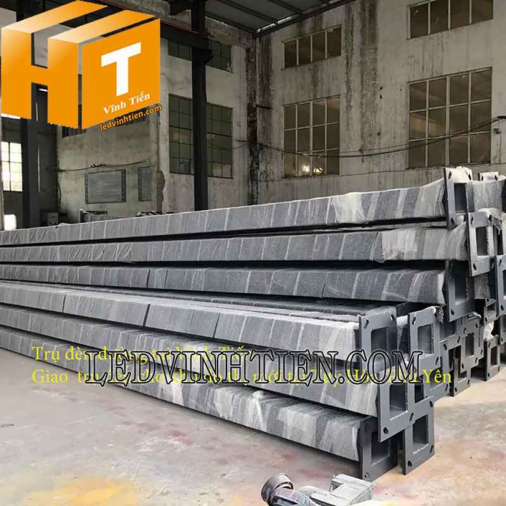 - Cột đèn có chiều cao từ đế cột đèn đỉnh cột là 7m, được hàn dọc từ 8 miếng thép lại với nhau.